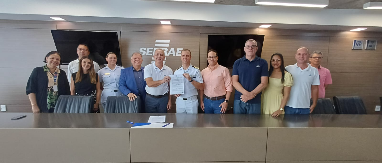 Assinatura do termo de cooperação entre Sebrae/ES e Capitania dos Portos foi realizada na sede do Sebrae, com as presenças de diretores, gerentes e representantes da Capitania