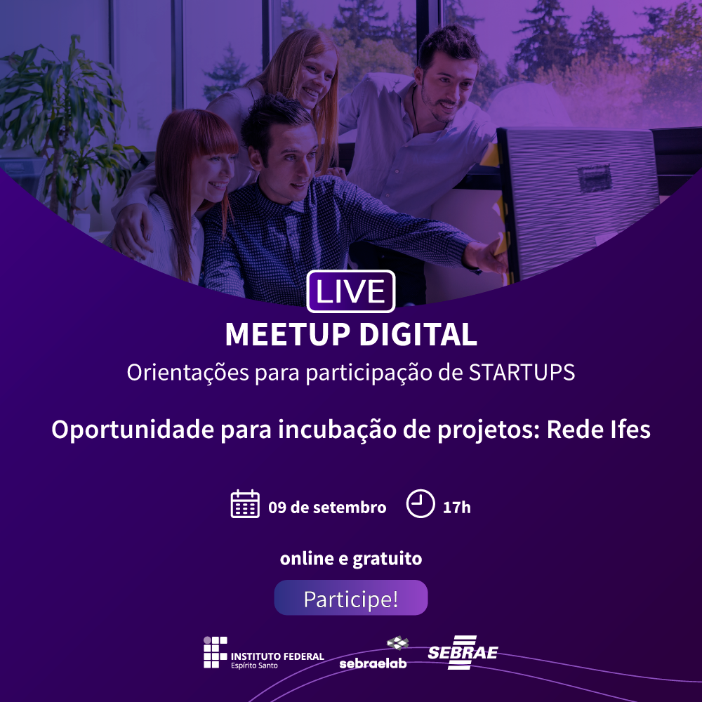 “Damos mais um passo em direção ao fortalecimento do ecossistema de inovação capixaba, e ao alcance das metas propostas pela Mobilização Capixaba pela Inovação (MCI). Desta vez, o Programa de Inovação do Sebrae se une ao Ifes num encontro que levará informação a jovens startups que buscam a oportunidade de estar dentro de um dos núcleos incubadores do Instituto. É o primeiro edital dessa proporção lançado pelo Ifes, e o Sebrae/ES apoia essa iniciativa”, salienta o diretor técnico do Sebrae/ES, Luiz Toniato, que abrirá o evento digital. As inscrições para o meetup devem ser feitas na Loja Sebrae.